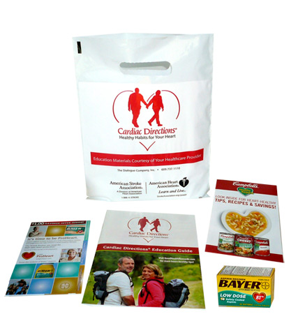 Patient kits are provided in sufficient quantities so that they can be given to each of your cardiac patients. Patient kits are delivered pre-packed, and ready for you to hand out. Please Note: Contents of the kits change from time to time, and specific items may differ from those depicted in the photo.