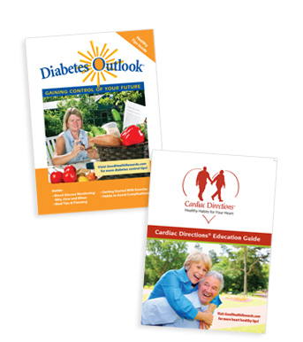 ® Health Education Programs include advertiser-sponsored publications. These digest-sized health education magazines accompany the Cardiac Directions and Diabetes Outlook gift kits that are hand-delivered to patients by supporting healthcare professionals, within environments that provide greater immediacy, need and consumer receptivity.